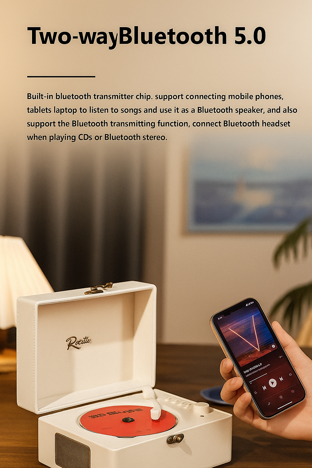 → Bluetooth 5.0 – Seamlessly switch between vintage CDs and modern streaming